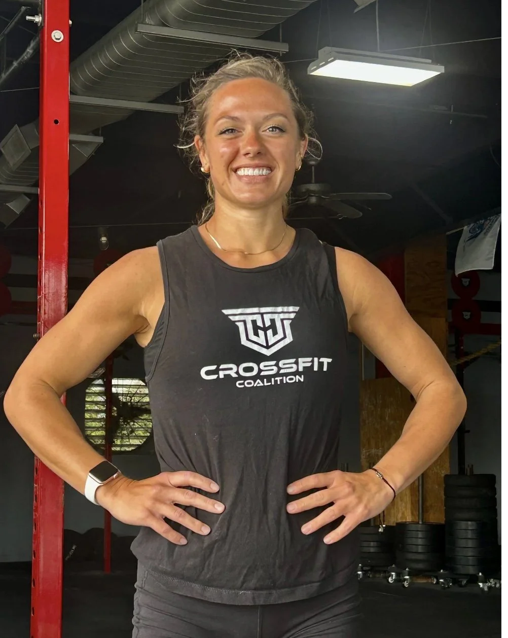 She started CrossFit in 2019 after having two kids and realizing the YMCA wasn’t cutting it. She quickly fell in love with the grind and got her L1. After a few years she decided to get her L2 and not long after she moved down to NC to be in the sunshine. Now a mom of three, she loves helping others get stronger, gain confidence, and push past their limits. When she’s not coaching she’s doing wedding hair, designing brand logos, managing social media, or enjoying time at the beach.